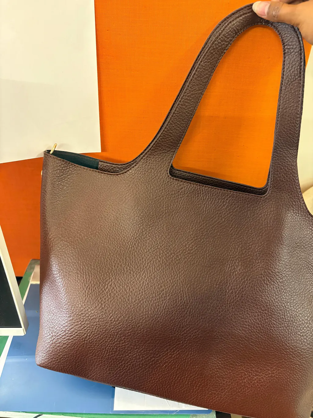 Designed for women who value understated luxury and everyday versatility, this statement tote bag brings together minimal design, refined craftsmanship, and smart functionality. Crafted in a rich, warm-toned leather-finish texture, the bag features a clean, contemporary silhouette that transitions effortlessly from workdays to weekend outings.